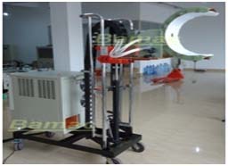 ● Hydraulisches Heben   mit großer Reichweite  ● Fahrbar mit Rollen  ● Mit flexiblen Verbindungskomponenten von Bamac zum Hantieren von Transformatoren |  ● Elektrisch oder mit Pedalbetätigter    Hydraulik  ● Fahrbar, zur Positionierung von    Induktoren  ● Der Induktor kann einzeln oder zusammen mit dem Generator installiert werden |  |